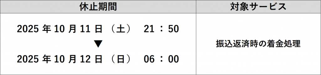 なお、振込返済時の着金処理につきましては再開次第、順次処理させていただきます。