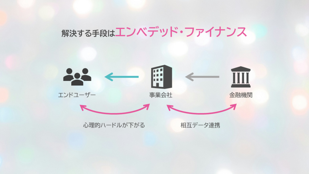 エンドユーザーは普段使っているアプリの中で、自然にお金を借りることができるため心理的ハードルを下げられる上に、データ連携により自分に合った与信を受けられることになります。